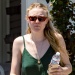グリーンのサマードレスにフラットサンダルを合わせた夏コーデのダコタ・ファニングをキャッチ